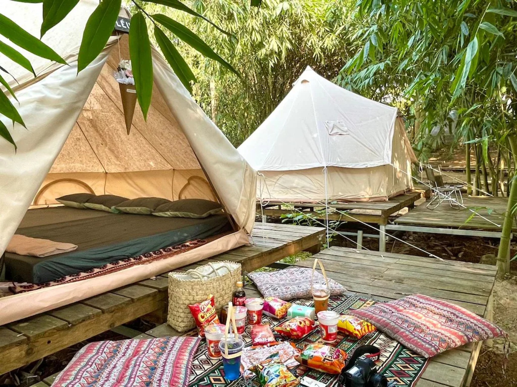 • Lều được bố trí trên sàn cao và nằm riêng biệt.